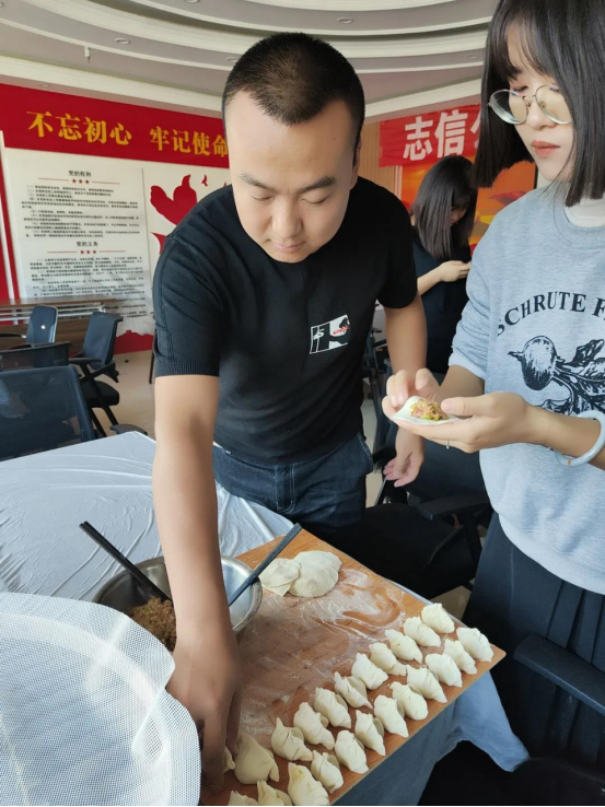 為讓員工們既感受到冬至的節(jié)氣,又能感受到自己動(dòng)手包餃子的氣氛和樂趣,培養(yǎng)員工集體生活的樂趣,增進(jìn)同事之間的友誼,讓大家過一個(gè)快樂而溫馨的節(jié)日,公司組織了包餃子活動(dòng),包餃子過程中,大家分工協(xié)作,你搟皮、我包餡,笑語不斷,情緒高漲,臉上寫滿了快樂和幸福。一排排獨(dú)具個(gè)性的餃子很快就擺滿了一個(gè)個(gè)餐具。