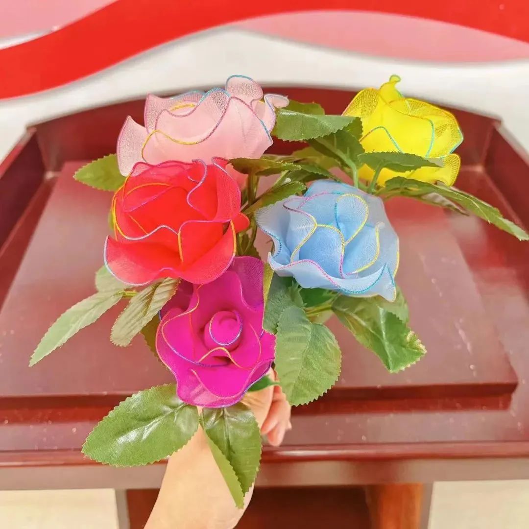 活動最后,縣婦聯邀請“陽光女紅”婦女微家家長李榮華現場教授絲網花制作。李老師一邊講解絲網花的制作技巧,一邊做示范。隨后,大家一起進行現場實操,不一會兒,一個個絲網花作品便初具雛形。最后,大家開心地舉著自己親手制作的絲網花拍照留念,記錄美好時刻。