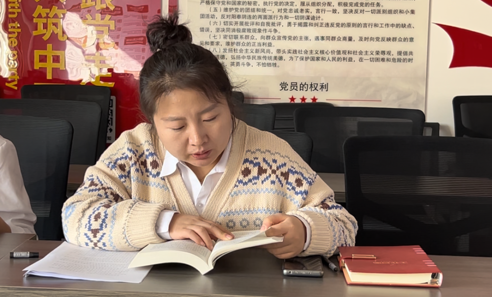 讀書活動中,青年干部們通過讀原著學(xué)原文悟原理的方式輪流閱讀了黨章第一章——第三章)、《習(xí)近平新時代中國特色社會主義思想專題摘編》(137頁——157頁),并分享了閱讀心得。