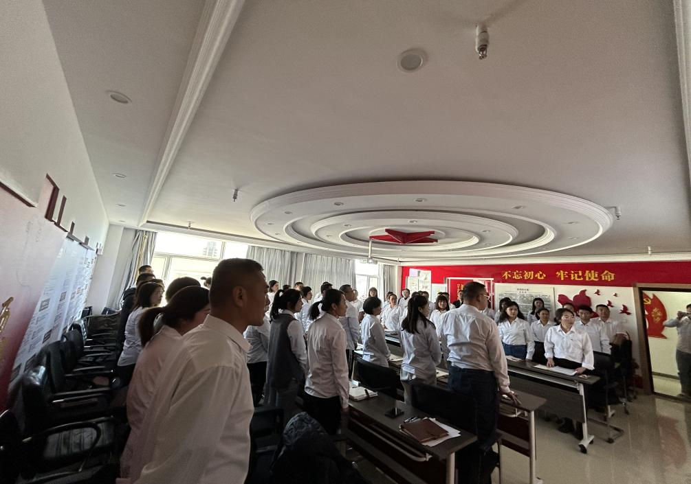 會議開始前,內蒙古志信建筑工程有限公司黨支部書記寧杰帶領大家奏唱國歌。