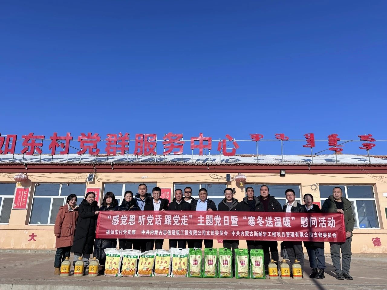 為深入開展學習貫徹習近平新時代中國特色社會主義思想主題教育,走好新時代黨的群眾路線,發揮黨組織帶頭作用和黨員干部先鋒模范作用,切實為困難群眾送去關懷和溫暖,2023年12月28日上午9:30,中共內蒙古志信建筑工程有限公司支部委員會聯合福如東村黨支部、中共內蒙古斯耐軒工程項目管理有限公司支部委員會共同開展“感黨恩 聽黨話 跟黨走”主題黨日暨“寒冬送溫暖”慰問活動。我公司全體黨員、發展對象參加。