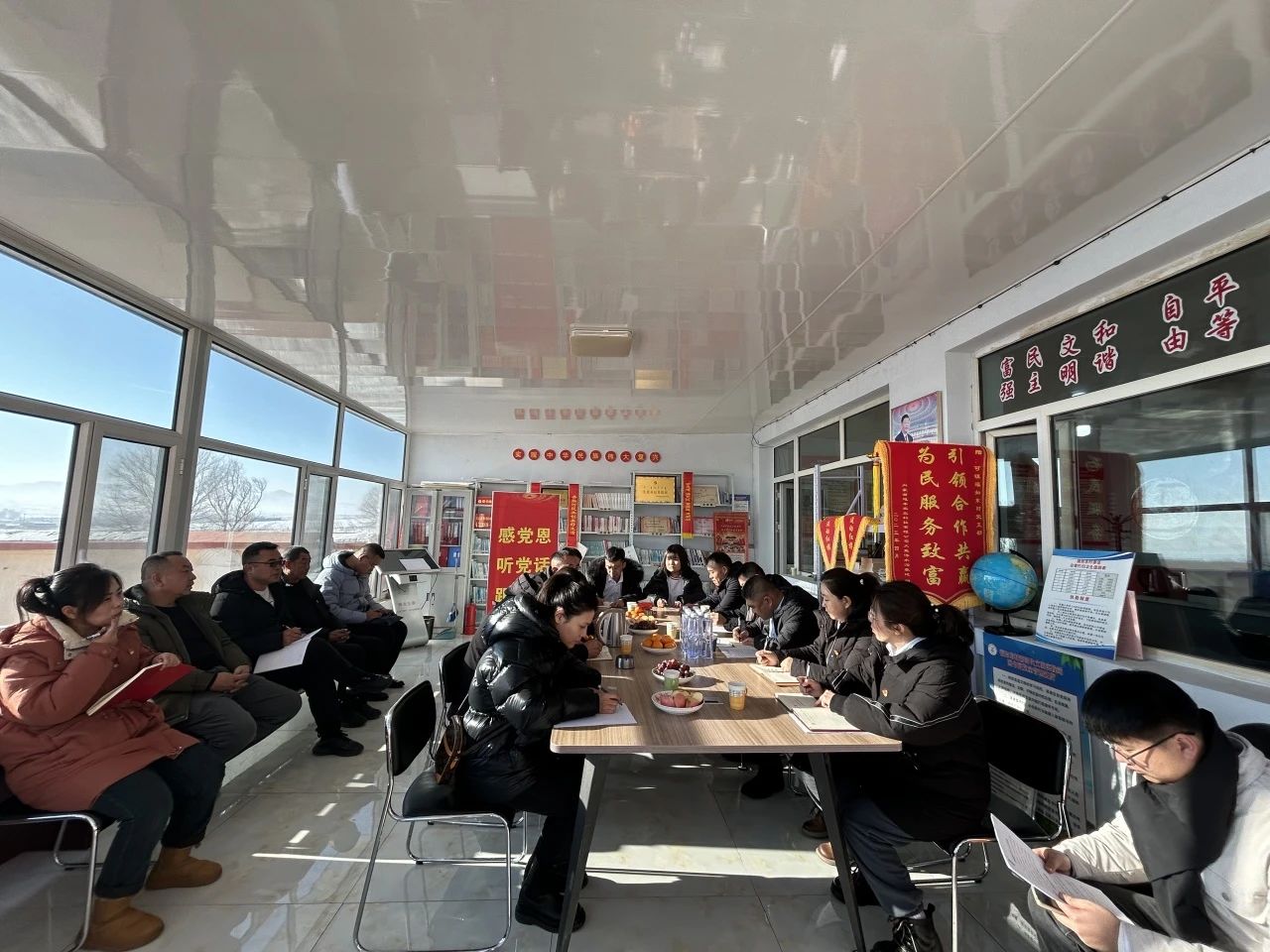 本次主題黨日活動緊緊圍繞全面貫徹黨的二十大精神,學深悟透習近平新時代中國特色社會主義思想總體目標,首先到福如東村民委員會進行了座談,福如東村黨支部書記郝平介紹了福如東村黨支部學習貫徹習近平新時代中國特色社會主義思想主題教育開展情況及村委會民生、產業發展、農產品銷售等情況。內蒙古志信建筑工程有限公司總經理王志文介紹了公司黨支部基本情況、主題教育開展情況及黨建如何引領企業高質量發展。黨員干部通過實地觀看,真切感受到在中國共產黨的領導下,福如東村從“尾巴村”到如今的度假村、“明星村”,走上了鄉村振興的幸福路,村民共享改革發展成果。