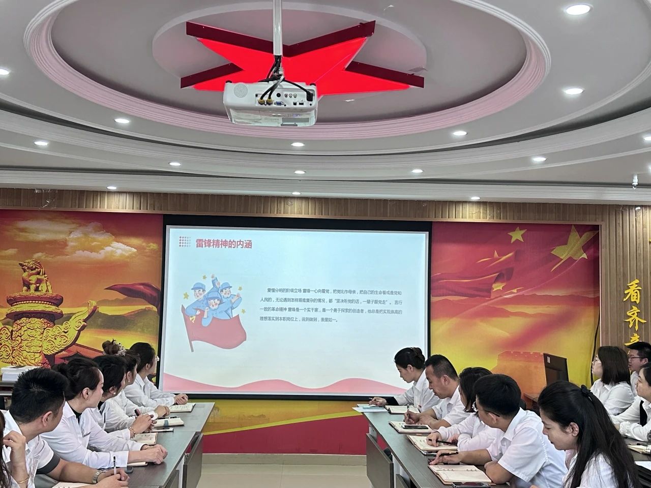 會議開始,由黨群服務中心主任樊占芳為大家介紹雷鋒紀念日的背景。