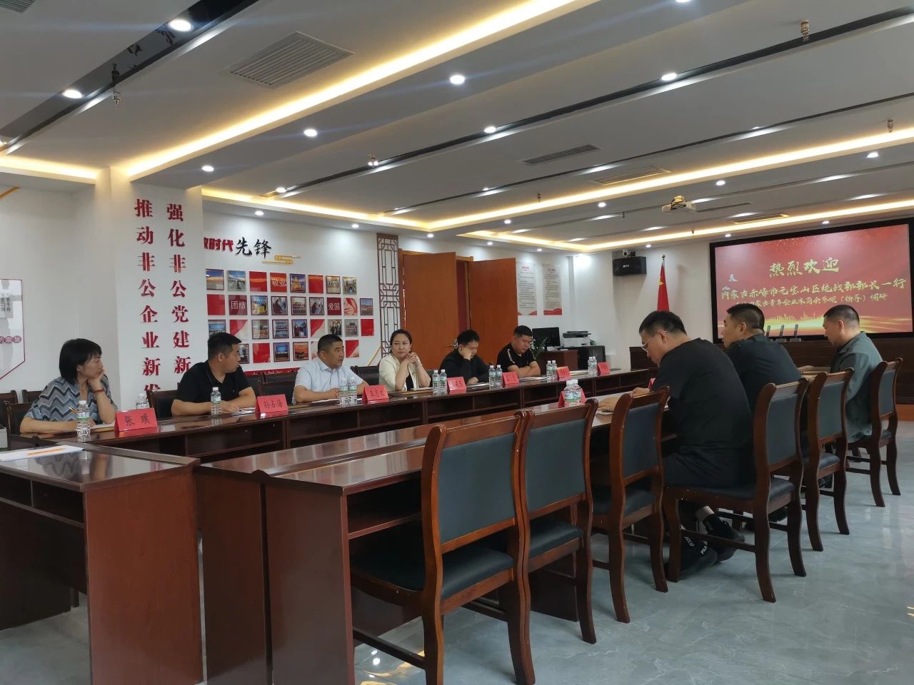 5月24日上午,內蒙古赤峰市元寶山區統戰部部長張立濤、赤峰市元寶山區工商聯主席李文杰、赤峰領先未來電子商務有限公司董事長杜華宇一行蒞臨“微聯”非公黨建共享陣地參觀調研指導,內蒙古志信建筑工程有限公司總經理王志文、內蒙古青年企業家商會會長叢莉惠等人共同接待來訪。
