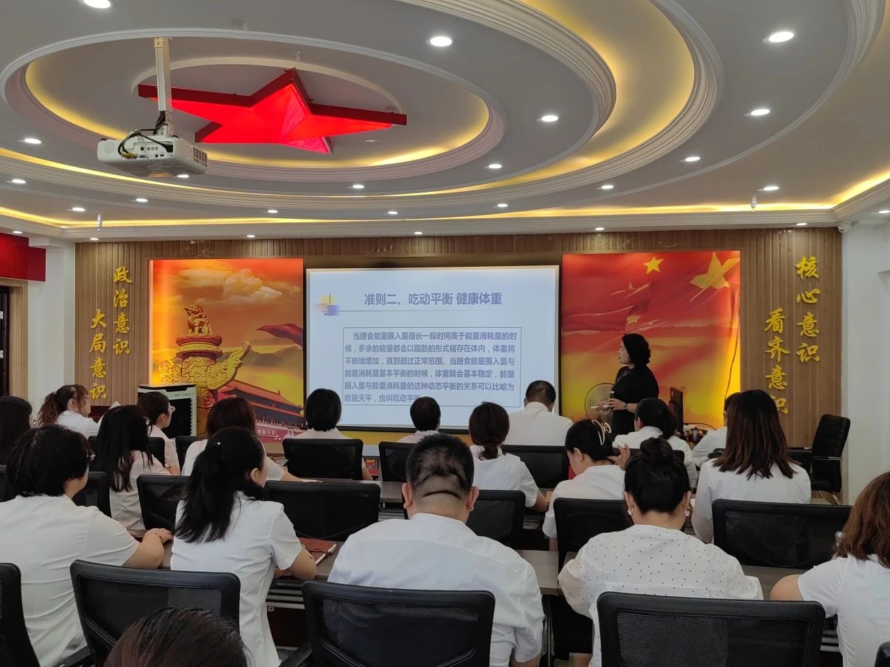 為深入學(xué)習(xí)貫徹習(xí)近平新時(shí)代中國特色社會主義思想,以鑄牢中華民族共同體意識為主線,深入開展“感黨恩、聽黨話、跟黨走”群眾教育實(shí)踐活動6月14日我公司特邀內(nèi)蒙古營養(yǎng)健康管理協(xié)會會長、九三學(xué)社內(nèi)蒙古區(qū)委經(jīng)濟(jì)與健康支社副主委、婦委會副主任劉競謙開展?fàn)I養(yǎng)膳食健康講座,此次講座旨在向員工們普及科學(xué)的飲食知識,提倡健康的生活方式。