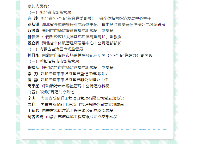 市委組織部非公黨建領導、呼和浩特市市場監督管理局...