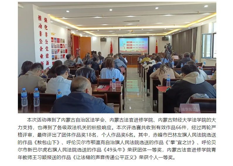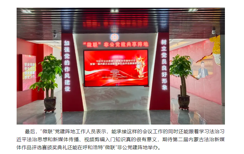 第一屆內(nèi)蒙古法治新媒體作品評選賽頒獎典禮在呼和浩特“微聯(lián)”非公黨建陣地舉辦。