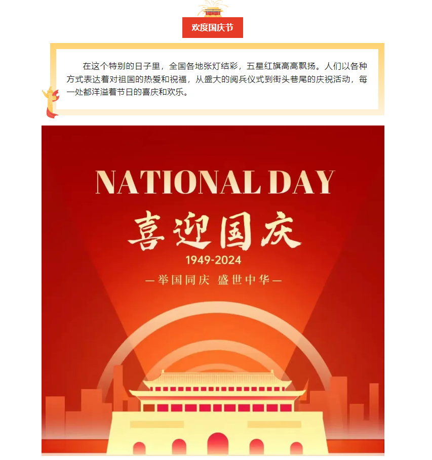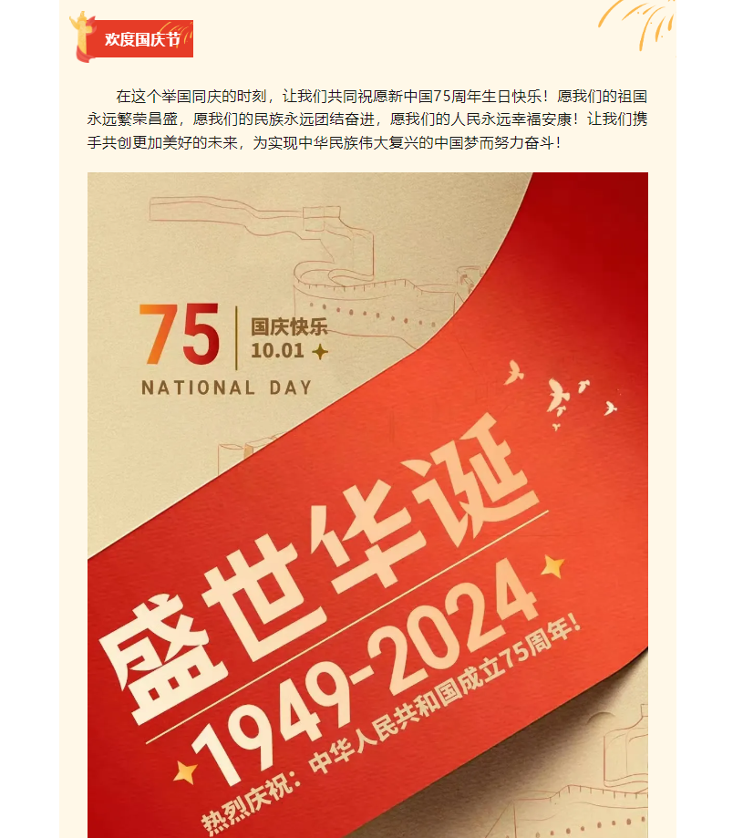 歡度國慶,銘記75載輝煌,共繪祖國新篇章!