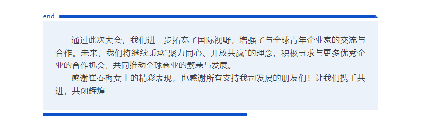 “聚力同心、開放共贏”我司崔春梅代表出席第四屆世界青商大會