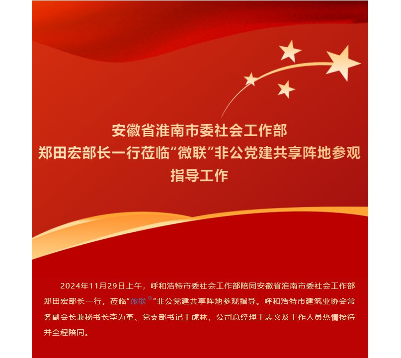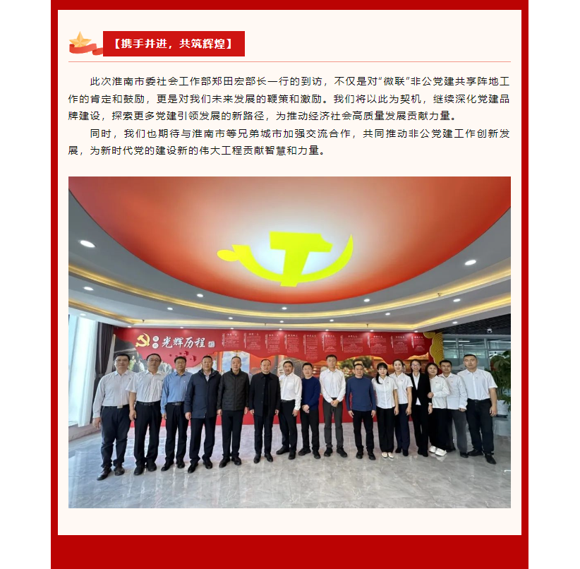 【攜手并進,共筑黨建新輝煌】安徽省淮南市委社會工作部鄭田宏部長一行蒞臨“微聯”非公黨建共享陣地參觀指導