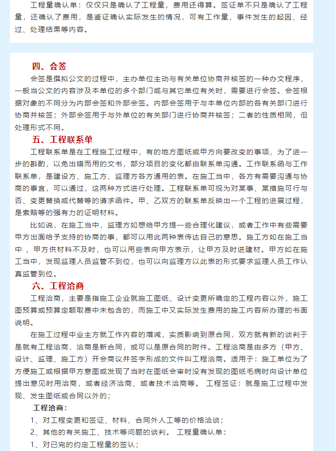 設計變更、工程簽證、確認單、工程洽商、聯系單、會簽的區別