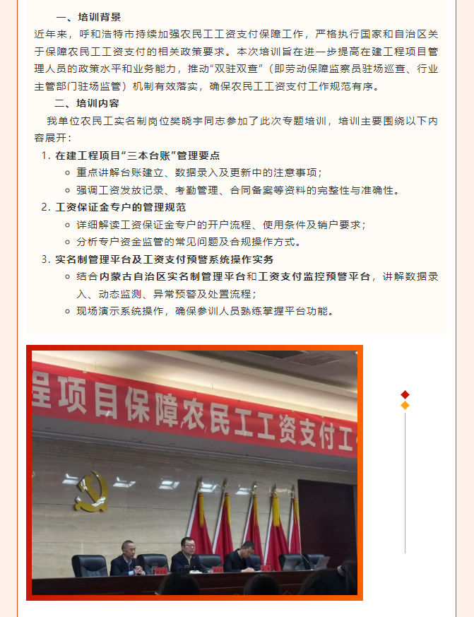 【重要培訓動態】呼和浩特市開展2025年保障農民工工資支付工作暨“雙駐雙查”業務培訓