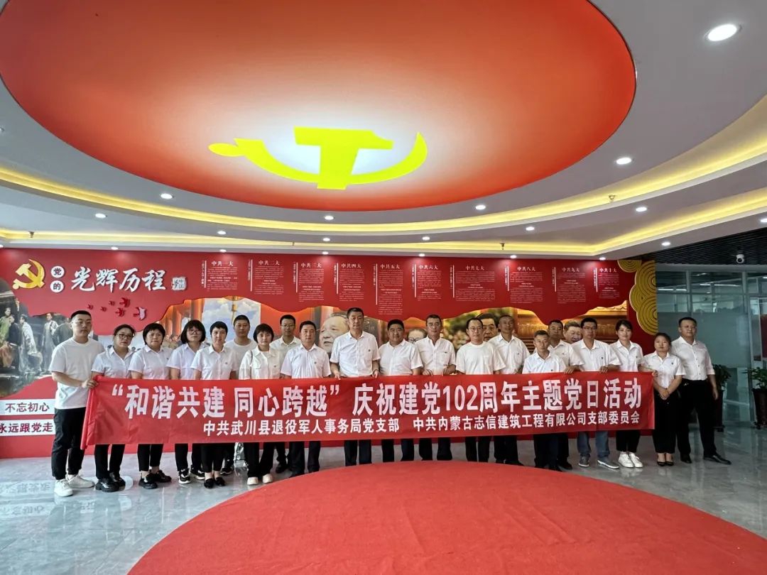 為慶祝中國共產黨成立102周年,持續繼承發揚黨的優良傳統和作風,增強基層黨組織的創造力、凝聚力和戰斗力,增強黨員的榮譽感、責任感和歸屬感,中共內蒙古志信建筑工程有限公司支部委員會與中共武川縣退役軍人事務局黨支部共同舉辦“和諧共建 同心跨越”慶祝建黨102周年主題黨日活動。