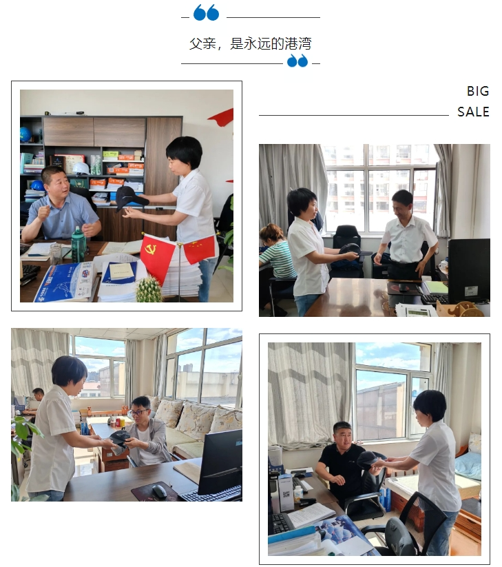 在這個暖暖的充滿感恩的時刻,公司為每一位成為父親和即將成為父親的員工送上一頂速干帽子,希望讓父親們能在炎炎夏日的生活和工作中感受一絲清涼,在這個父親節,不僅要送去關心和禮物,更要讓每一位父親感受到我們的關愛與尊重。我們時常歌頌母親,卻總是無法形容深沉的父愛,對父親,我們總是忘記表達,他們卻永遠如此真誠。為愛扛起一片天,讓我們祝愿偉大的父親們節日快樂!身體健康!