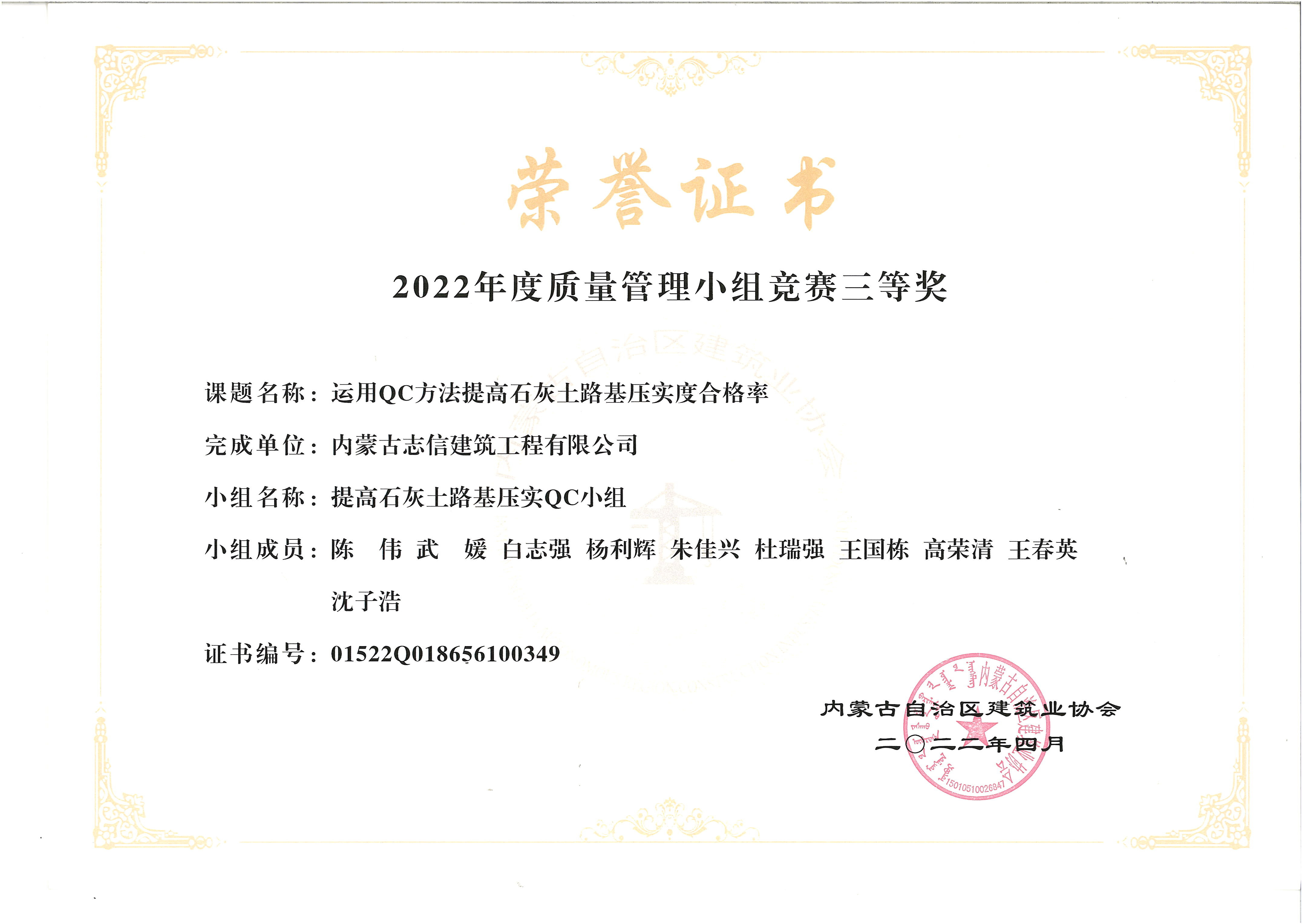 提高石灰土路基壓實QC小組--運用QC方法提高石灰土路基壓實度合格率