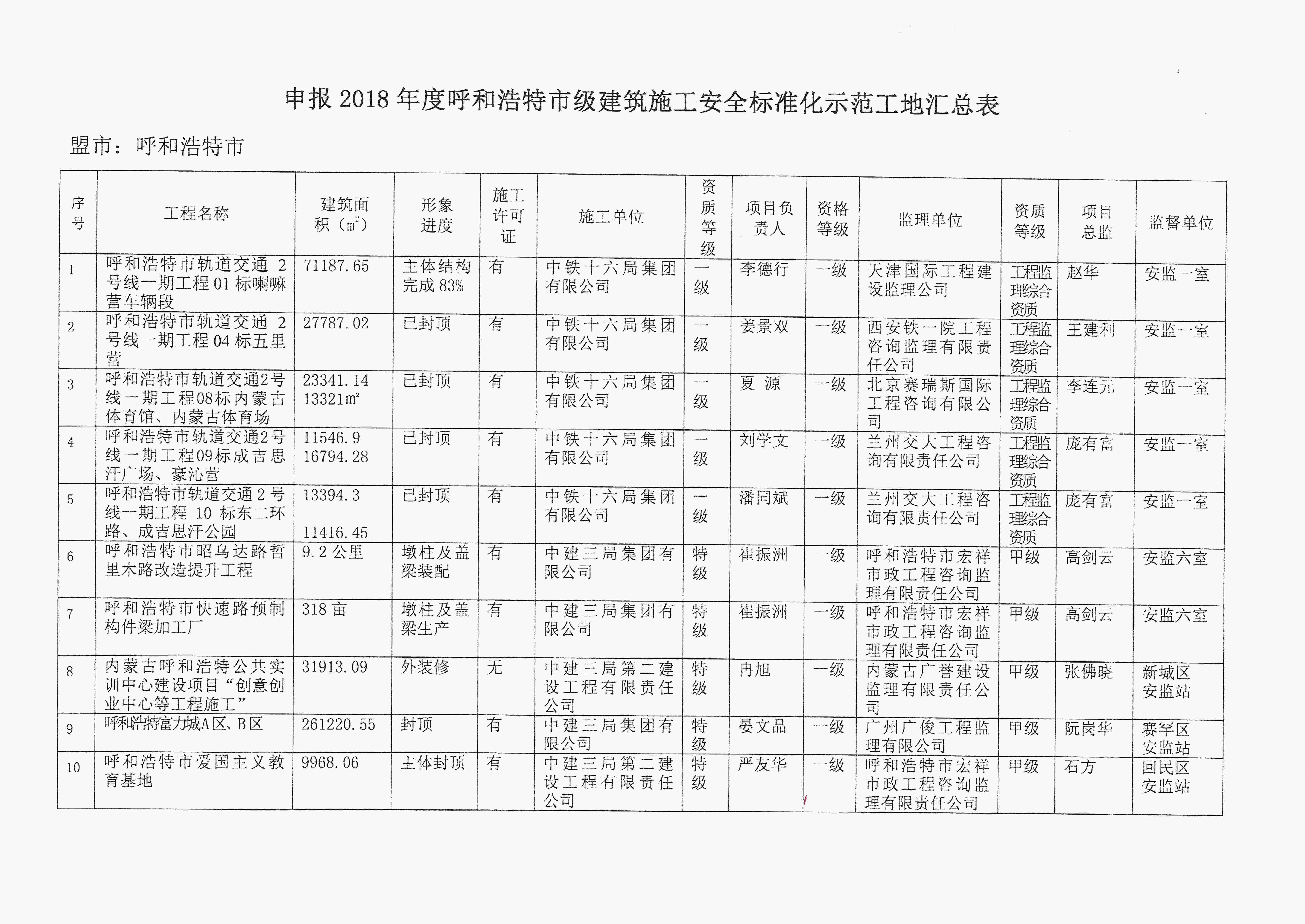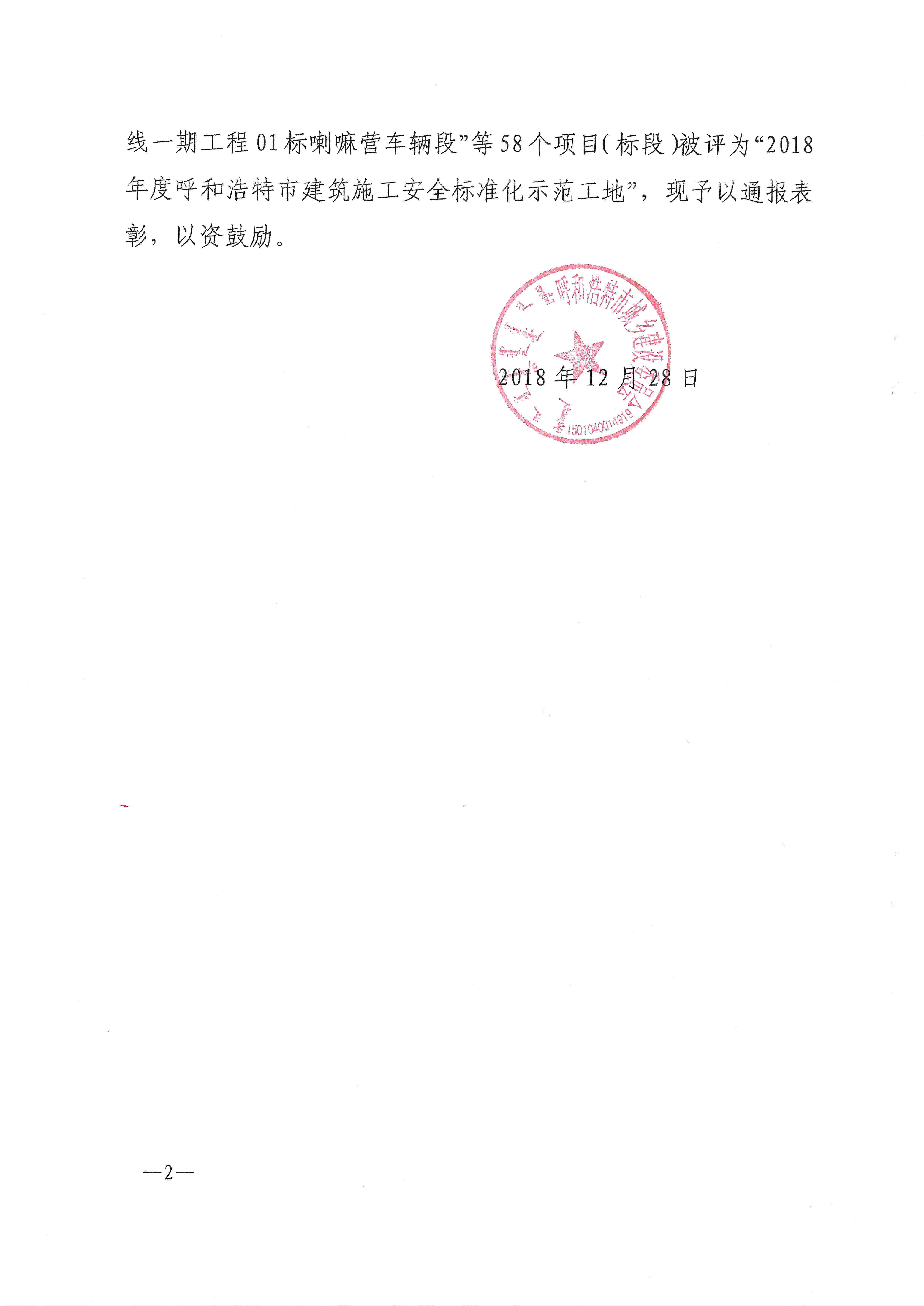 2018年度呼和浩特市建筑施工安全標準化示范工地的決定