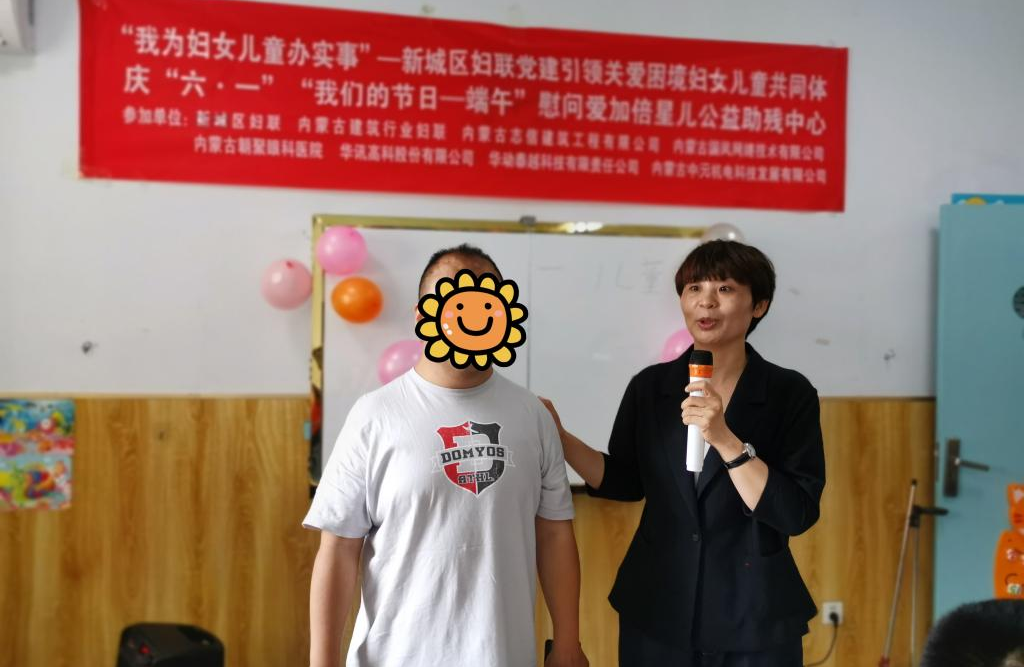 為讓他們一起度過一個歡樂的兒童節,倡導更多的人關心關愛孤獨癥等特需兒童。5月31日,新城區婦聯聯合內蒙古志信建筑工程有限公、內蒙古建筑行業婦聯、內蒙古朝聚眼科醫院有限公司、內蒙古中元機電科技發展有限公司、華動泰越科技有限責任公司、華訊高科股份有限公司、內蒙古國風技術有限公司、司來到愛加倍星兒公益助殘中心開展“我為婦女兒童辦實事”——新城區婦聯黨建引領關愛困境婦女兒童共同體慶“六·一”“我們的節日—端午”慰問愛加倍星兒公益助殘中心活動。