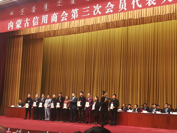 內蒙古信用商會第三次會員代表大會在呼和浩特市內蒙古人民大會堂舉行,志信公司董事長范娟當選第三屆副會長
